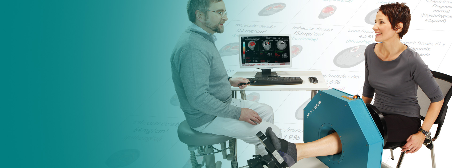 Mit der pQCT-Technologie kann aus der Querschnittsgeometrie die Festigkeit des Knochens für Biegung und Kompression berechnet werden. Darüber hinaus liefert sie - im Gegensatz zu flächenprojizierten Verfahren - physikalisch korrekte Dichtewerte in g/cm³. Dadurch sind die Dichtewerte unabhängig von der Größe des Knochens, was besonders bei Kindern eine wichtige Rolle spielt. Mit der pQCT-Technologie kann kortikaler und trabekulärer Knochen getrennt analysiert werden, so dass Veränderungen im Knochen zuverlässig und früh nachgewiesen werden können.